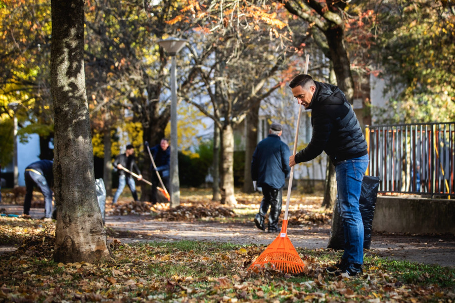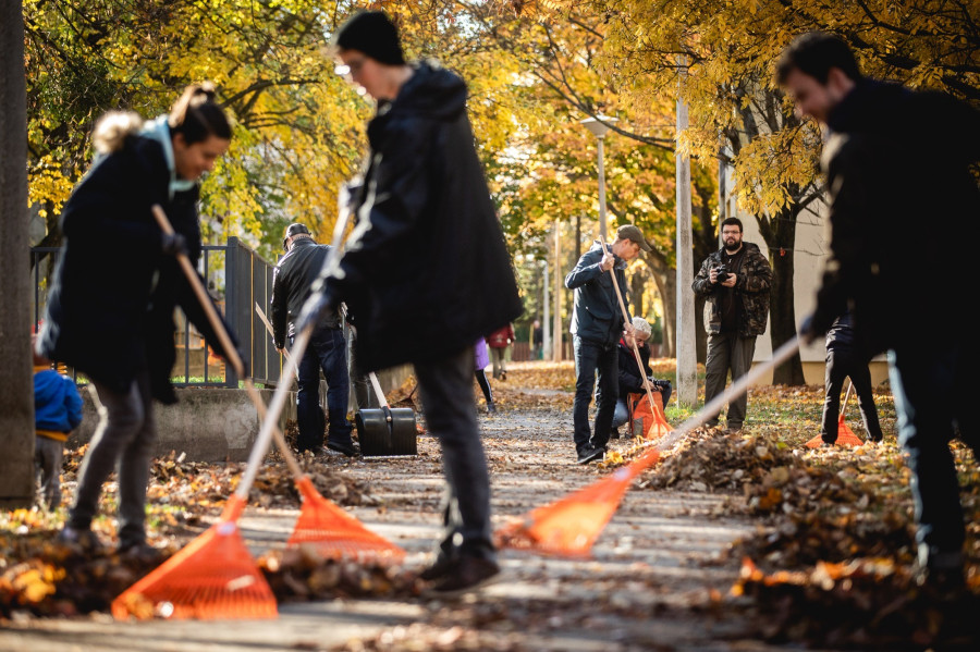 A környéken élők a legfiatalabbaktól az idősebbekig képviseltették magukat szombaton a Pro Bono Veszprémért Egyesület által szervezett közösségi lombgyűjtő akcióban az Egry úti lakótelepen. A lehullott faleveleket a VKSZ Zrt. által kihelyezett gyűjtőpontokon helyezték el, itt tárolják majd télen, tavasszal pedig, ha kellő minőségű humusz alakul ki, azt a helyi lakosságnak osztanák vissza – nyilatkozta Csík Richárd önkormányzati képviselő.