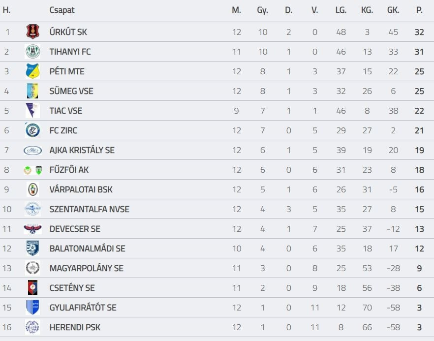 Tizenkettedik köréhez érkezett hétvégén a vehir.hu labdarúgó megyei I. osztály mezőnye. A Tihany 3-1-re múlta felül a vendég Devecser együttesét, míg az Úrkút 2-0-ra nyert a Zirc otthonában. A két említett, győztes alakulat továbbra is tapad egymásra a tabella élén.