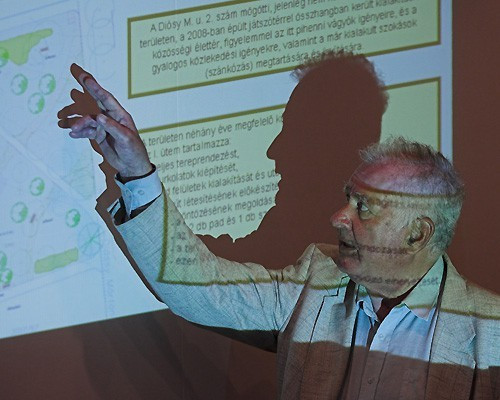 Kovács Lajos az övezet tervezője, részletesen ismertette a terv minden pontját. Elmondta, a tér kialakításánál két fontos szempontot vett figyelembe: hogy a csendes, kirándulós, pihenős terület távol lesz a zajos parkolóktól és vendéglátóhelyektől. A tervező elárulta, fapergola, sűrű növényzet, kisebb levendulamező, valamint örökzöld csoport színesíti majd a környezetet.