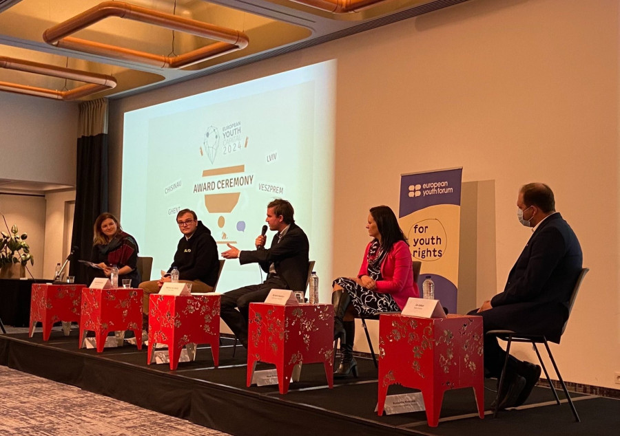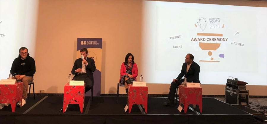 Az Európai Ifjúsági Fórum (European Youth Forum) által kijelölt zsűrihez még szeptemberben kellett eljuttatni egy komplett pályázati anyagot, amit aztán múlt héten személyesen is prezentált a veszprémi csapat Brüsszelben.