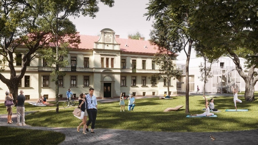 „Adott egy 13,5 ezer négyzetméteres park, amin több épület is áll. Első lépésben fel kellett mérni az adottságokat. Megnézni, hogy statikailag milyen állapotban vannak, faldiagnosztikával feltárni a falak nedvesség- és sótartalmát, örökségvédelmi leltárban rögzíteni a védendő értékeket vagy faanyagvizsgálattal megállapítani a tetőszerkezet megfelelőségét. Aztán kert- és tájépítészek is érkeztek, az egykori kórház kertjében annyira precíz munkát végeztek, hogy voltak olyan fák, ahol például egy speciális ultrahangos technológiával mérték meg a fatörzsek állapotát, ez mind-mind fontos a későbbi tervezéshez. Amikor az összes mérnök és szakember végzett a felméréssel, az ő munkájuk eredményeképp elkészült egy vastag tervezési dokumentáció, ami aztán az építészmérnök kezébe került a koncepcióval együtt, azzal a kéréssel, hogy ezt szeretnénk, és így.”