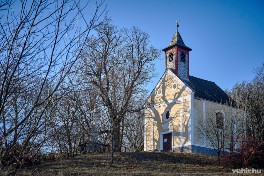 Hilár az alamizsnából befolyt összegből következő évtől kezdte el építtetni a ma látható kápolnát a Szent Kereszt megtalálása titulussal. Ehhez az alapító megszerezte a Szent Kereszt állítólagos kis darabkáját, így a kápolna búcsújáró hellyé is válhatott. Az épület 1767-ben készült el, miként azt a kőkeretes bejárat fölötti festett évszám mutatta. A kápolna harangját 1777-ben áldották meg, Szent Donát tiszteletére. E patrocínium nyilvánvalóan összefüggésbe hozható a dombon folytatott szőlőműveléssel, hiszen a szent segítségét szokták kérni a jégverés és viharok ellen. Hilár remete 1804. január 24-én hunyt el 67 éves korában, és itt, a kápolnában temették el. 1868. december 15-én újabb harangot kapott a kápolna, melyet Szent Kereszt és Szent Ilona tiszteletére szenteltek, újabb emlékéül a keresztény hagyománynak, miszerint Ilona császárné – Nagy Constantinus édesanyja – Jeruzsálemben megtalálta Krisztus keresztjének maradványait.