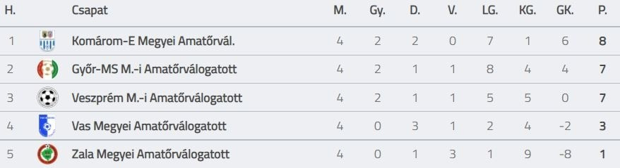 Veszprém megye válogatottja azonos pontszámmal végzett a második helyezett győriekkel, ám a rosszabb gólkülönbség következtében a Gunther-Szabó páros irányította gárda harmadikként zárt. Finta Péter, a megyei szövetség vezetője hangsúlyozta, büszke a veszprémi válogatottra, amelynek stábja, valamint játékoskerete is férfias küzdelmet vívott.