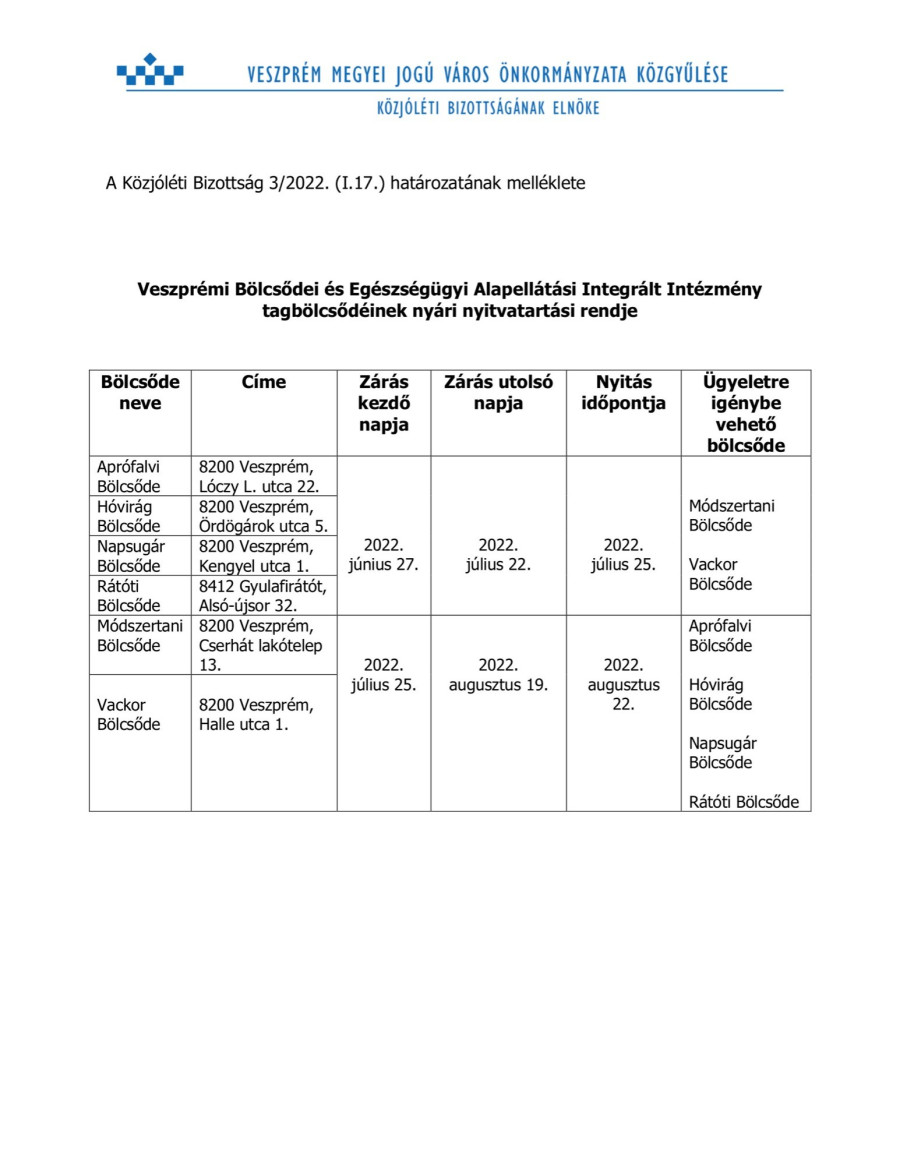 Bölcsődék nyári nyitvatartása