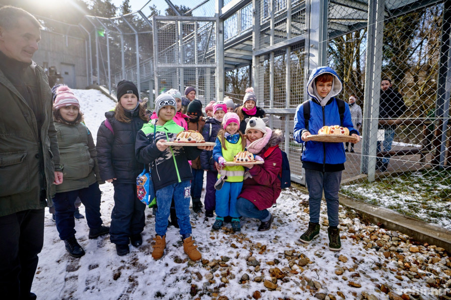 Mielőtt kinyitották volna a ketrecük ajtaját és felkínálták a lehetőséget, hogy kijöjjenek a tavaly átadott új, európai színvonalú kifutójukra, a gyermekeknek Csizmadia Károly zoopedagógus tartott rövid előadást a néphagyományról valamint a medvék szokásairól.
