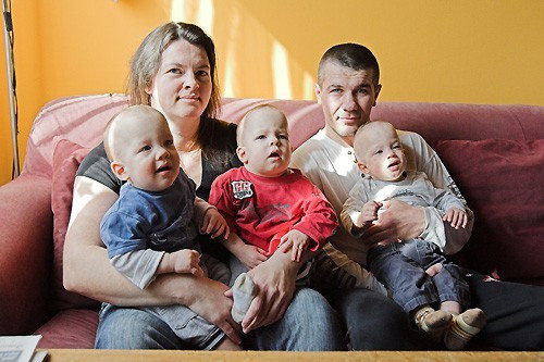 Dávid, Márk és Péter április 11-én lesznek egy évesek. A képviselők születésnapi ajándékcsomaggal és az anyukának szánt virágcsokorral, péntek délelőtt otthonukban, keresték fel a családot.