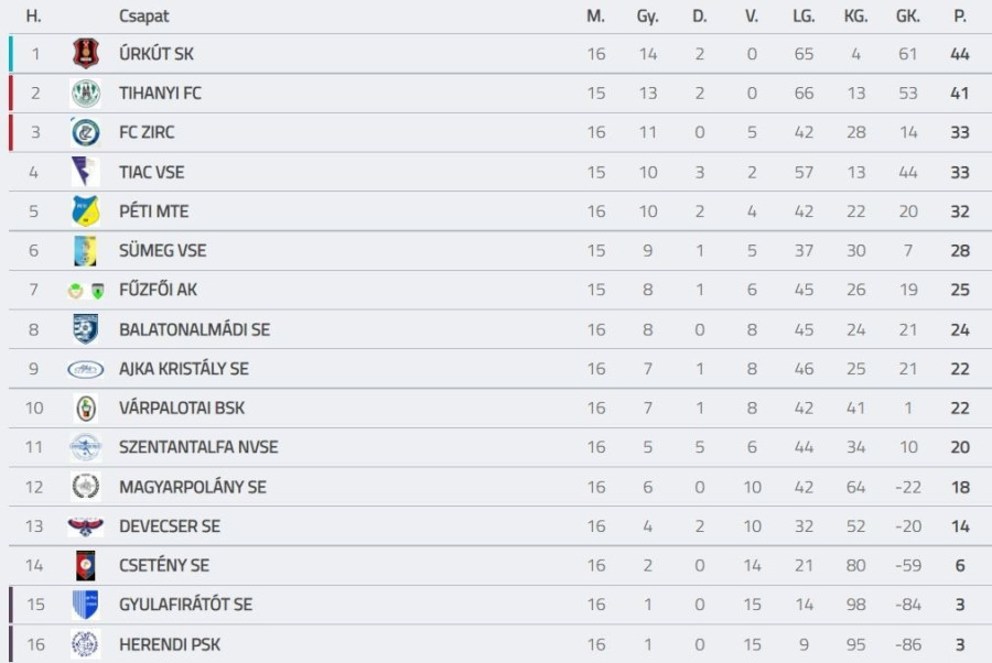 VEHIR.HU labdarúgó megyei élvonal, a 16. forduló eredményei: