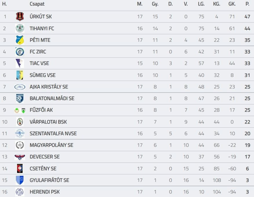Az élcsapatokra kötelező feladat várt, amelyet pazarul meg is oldottak: míg az Úrkút 10-0-ra (Reizinger Bence hetet vágott), addig a Tihany 9-1-re diadalmaskodott.