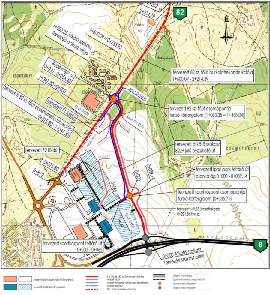 A mostani összekötő útszakasz technikai részleteiről Nyul Zoltán, a NIF Zrt. beruházási vezérigazgató-helyettese beszélt a helyszínen. Ő olyan beruházási kulisszatitkokat mondott el, amelyek rávilágítanak arra, nettó 3 milliárd forint állami forrásból nem csupán egy 1,1 km-es útszakasz építéséről van szó, hanem mindez magával vonja több közmű kiváltását, közvilágítás kialakítását, sőt kerékpárút is épül az új szakasz mentén a 82-estől az uszodáig. Ezeken kívül közlekedésbiztonsági szempontból sem elhanyagolható, hiszen a 82-es melletti lakóövezetbe az ott épülő körforgalmas csomópontnak köszönhetően még biztonságosabb lesz a be- és kihajtás. Körforgalom egyébként az összekötőn belül is épül egy, ez könnyíti majd meg sportközpontok parkolói felé a közlekedést.