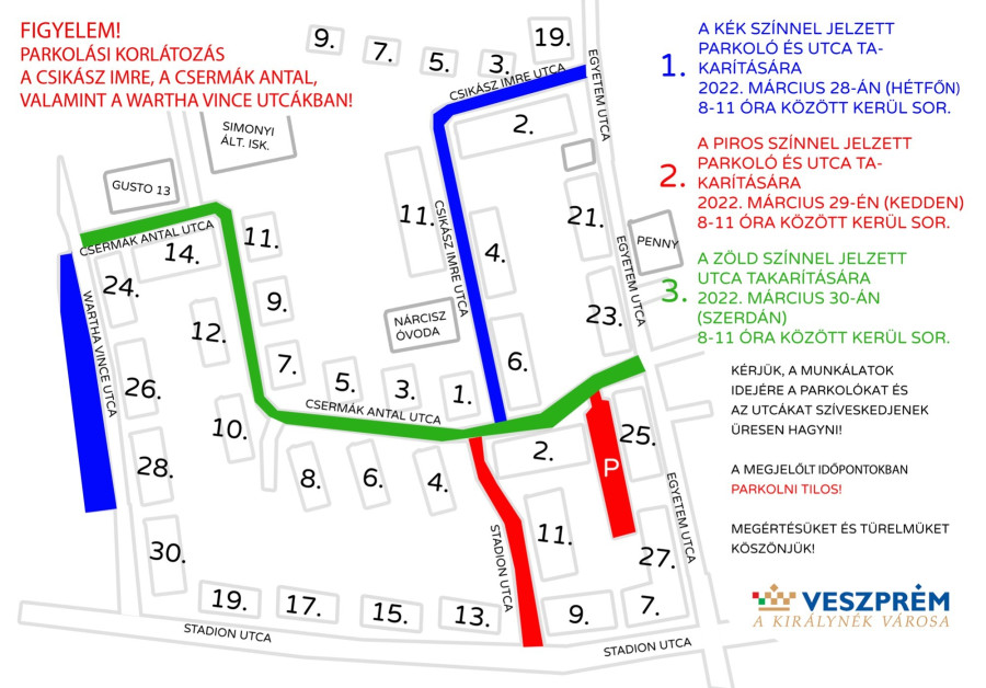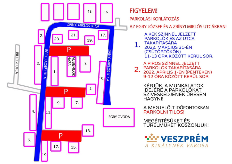 Ideiglenes parkoló- lezárások takarítási munkák miatt