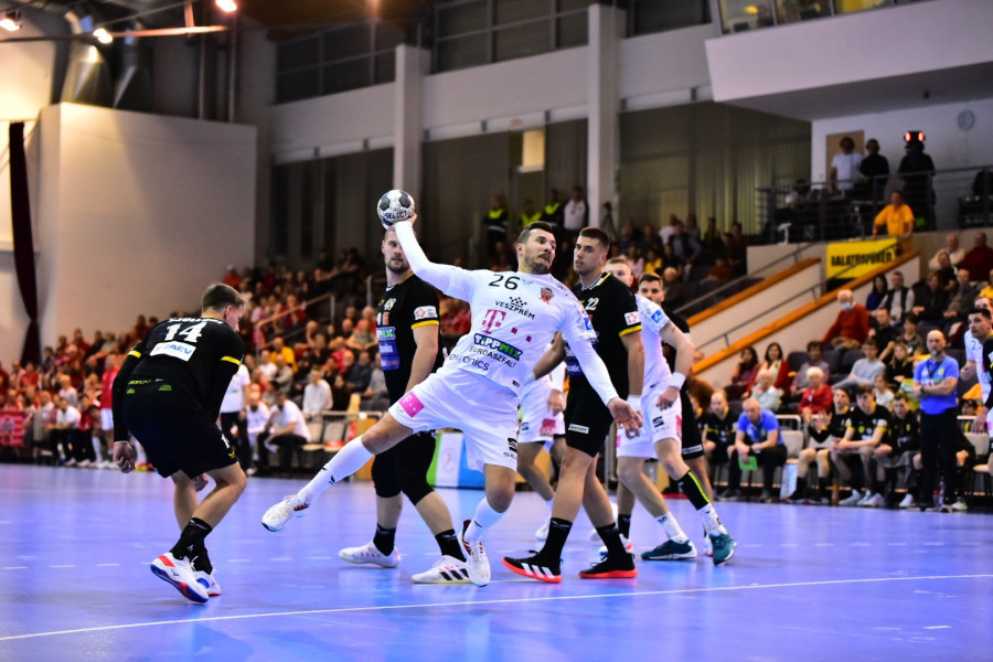 Fej-fej mellett haladtak a felek a találkozó elején, a fürediek – Szöllősi Balázs vezényletével – rendre válaszolni tudtak a veszprémi gólokra (5. perc: 3-3). A bakonyiak szellősen védekeztek, a bátran kézilabdázó tópartiak fordítottak, sőt, a 9.minutumban már kettővel vezettek (7-5).