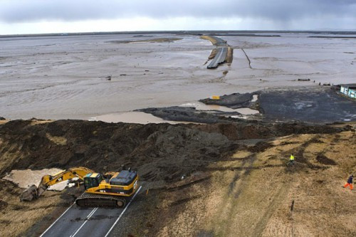 A gleccser jegét megolvasztva áradások nehezítik a földi közlekedést a vulkán környékén