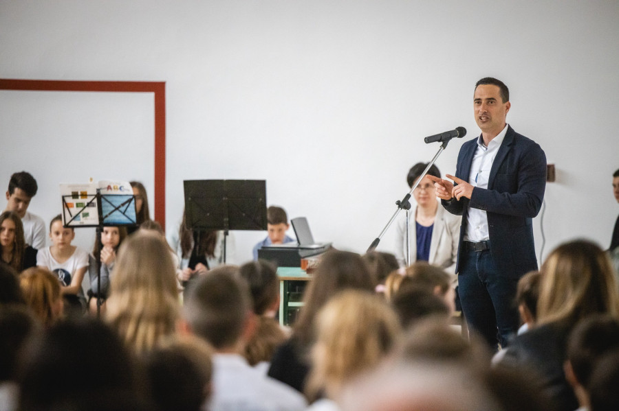 Ovádi Péter parlamenti képviselő elárulta a diákoknak, hogy annak idején neki is a testnevelés volt a kedvenc órája. A képviselő arra intette a gyerekeket, hogy mindig hallgassanak pedagógusaikra.