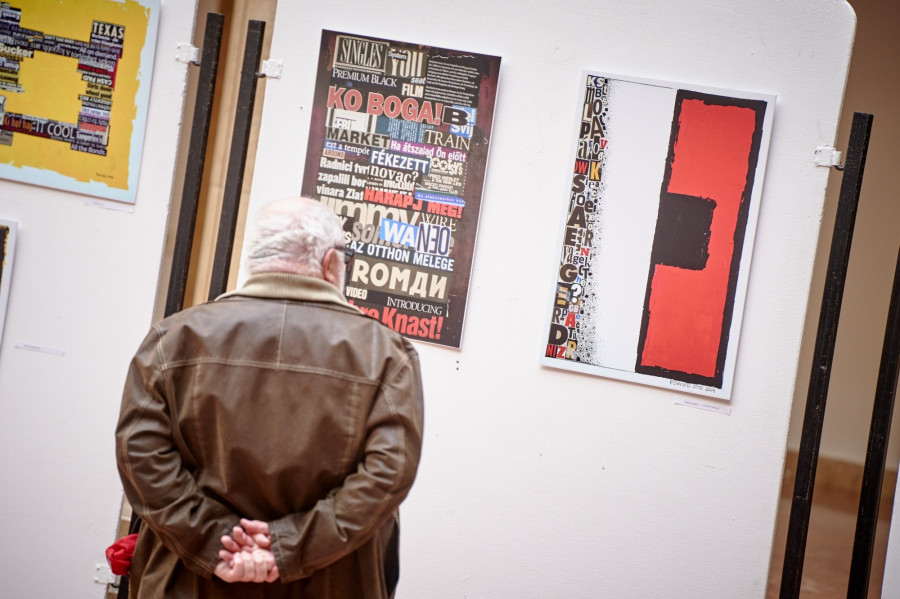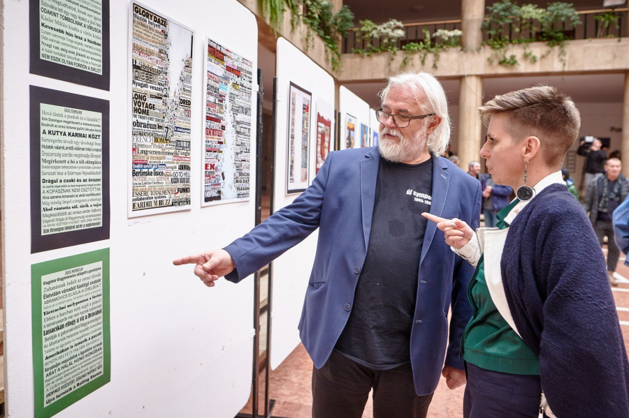 Az április 21-ig látogatható kiállításon 1983-tól kezdődően láthatjuk Fenyvesi kollázsainak másolatait, újságkivágásain keresztül az idők változásának is szemtanúi lehetünk. Legfrissebb darabjai szalagcímekből szerkesztett naplószerű képversek, amik az elmúlt egy-két évet ölelik fel, az alkotó elmondása szerint a leglehetetlenebb újságcímeket tette egymás mellé.