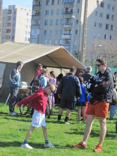 Az érdeklődők fél tíztől kezdtek gyülekezni a startvonal körül és egy kis aerobik edzéssel melegíthették be izmaikat.