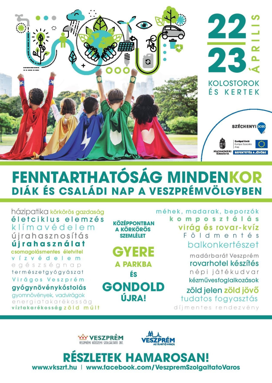 Immár hatodik éve szervezi meg a veszprémi közüzemi szolgáltató, a VKSZ Zrt. tematikus rendezvényét, melyen tudatosan kiválasztott, hasonló gondolkodású partnerekkel társulva töltik meg élménnyel a Veszprémvölgyet. A szolgáltató partnereivel közösen olyan interaktív állomásokat szerveznek majd a két nap során, ahol bebizonyítják a fenntarthatóság nem egy éppen aktuális divatirányzat, hanem már nagyszüleink életében is felbukkanó és igenis tudatosan alkalmazott életvitel volt. Emellett a folyamatosan fejlődő, új irányok is előtérbe kerülnek, mint a napenergia hasznosítása vagy az elektromos járművek világa.