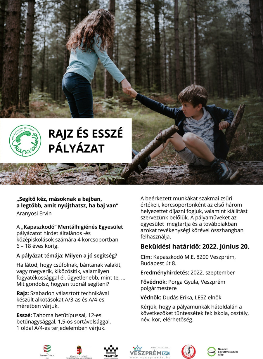 A Kapaszkodó Mentálhigiénés Egyesület erre a problémára, illetve az ehhez kapcsolódó segítségnyújtás fontosságára kívánja felhívni a figyelmet most meghirdetett rajzpályázatán keresztül. Mindez a projekt a kísérőeleme lesz a szeptemberre tervezett Öngyilkosság Megelőzési Világnapnak, aminek megszervezésével a Kapaszkodó Mentálhigiénés Egyesületet bízta meg az országos Magyar Lelki Elsősegély Telefonszolgálatok Szövetsége (LESZ).
