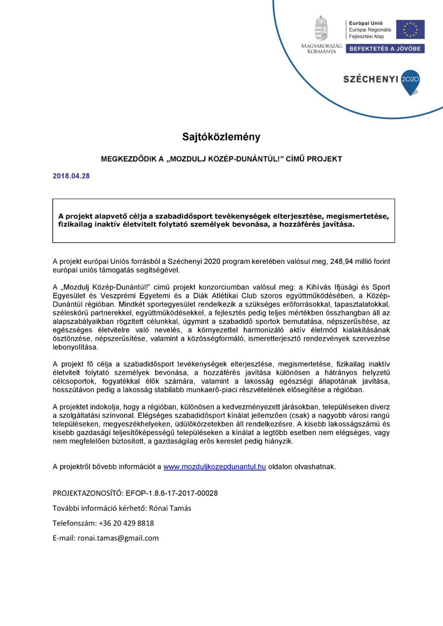 MEGKEZDŐDIK A „MOZDULJ KÖZÉP-DUNÁNTÚL!” CÍMŰ PROJEKT