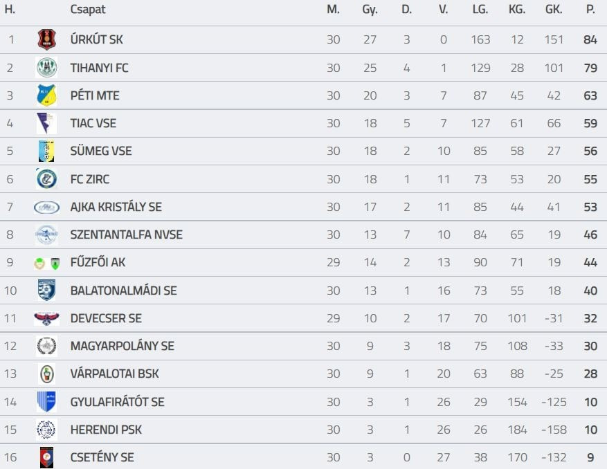 Már korábban eldőlt, hogy az Úrkút a bajnoka a Veszprém megyei I. osztályú labdarúgó-bajnokságnak, amelynek második helyén a Tihany, harmadik pozíciójában pedig a Pét végez. Egy forduló ugyanakkor még hátravolt a kiírásból, amelyet az elmúlt hétvégén rendeztek.