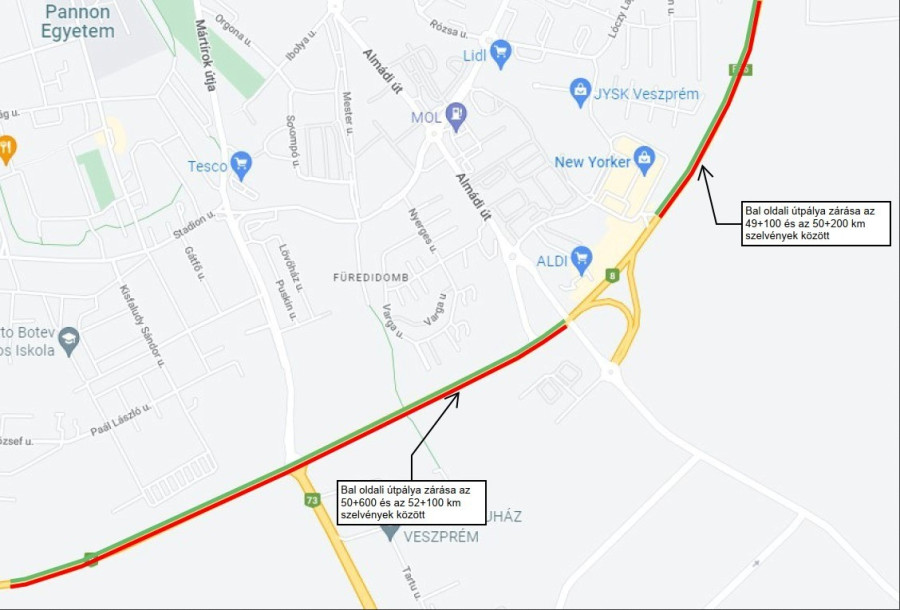 - a Székesfehérvár felől a Balaton felé vezető ág és a Győr felől Veszprém belváros felé vezető ág május végén