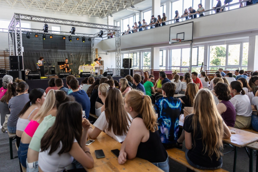 Ha így tekintünk vissza a tanévre, csodával határosnak érezhetjük a pénteki rendezvényt. Már a délutáni nyitáskor megtöltötték a színpadot a Lovassy Zenekar és a Csermakusztik tagjai, akik a vonósok hangzását az elektronikus zenével elegyítették. A nagyszámú fellépőhöz méltóan a tornateremben berendezett nézőtér is zsúfolásig megtelt érdeklődőkkel. A java pedig csak ezután következett: táncosok, énekesek, zenészek váltották egymást a színpadon és az alagsori előadótérben. Nevetések, ölelések, egymás nyakába borulás – olyan dolgok ezek, amik az elmúlt tíz hónapban gyakran hiányoztak a fiatalok életéből.