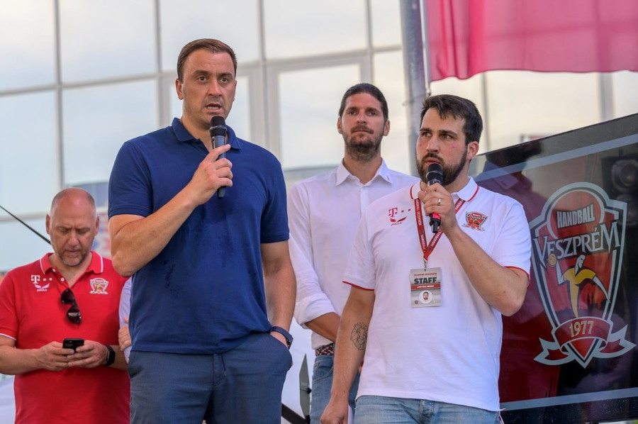 A sportigazgató után a csapat vezetőedzője, Momir Ilics is szólt a közönséghez, ő is megköszönte a szurkolást, hozzátéve, hogy 9 éve van Veszprémben és tudja, nem idén játszották a legjobb kézilabdát, de minden erejükkel azért küzdenek a továbbiakban is, hogy sikerüljön elhódítani a várva várt BL-serleget.