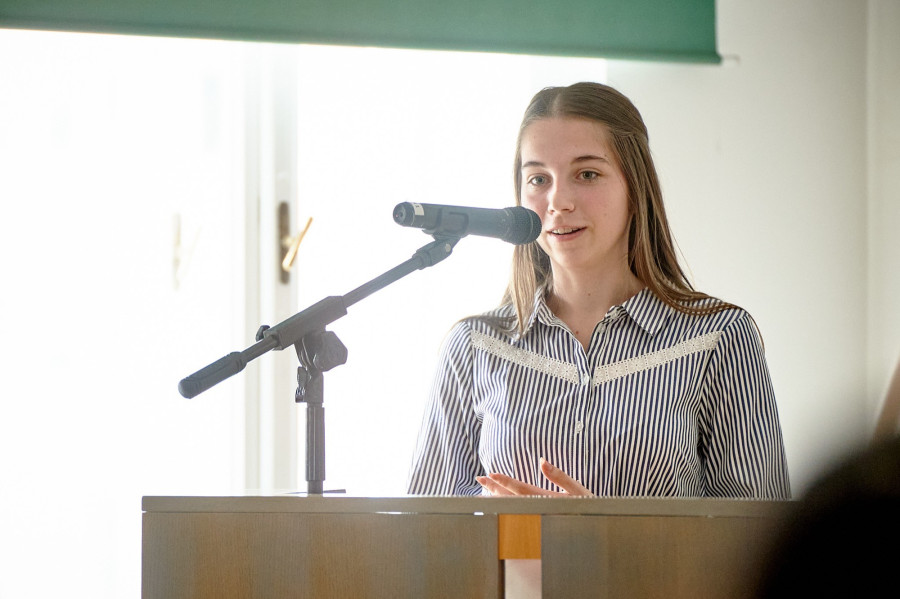 A délután során a Lovassy László Gimnázium hat végzős német nemzetiségi tagozatos diákja mutatta be rövid prezentációval a szakdolgozatát.