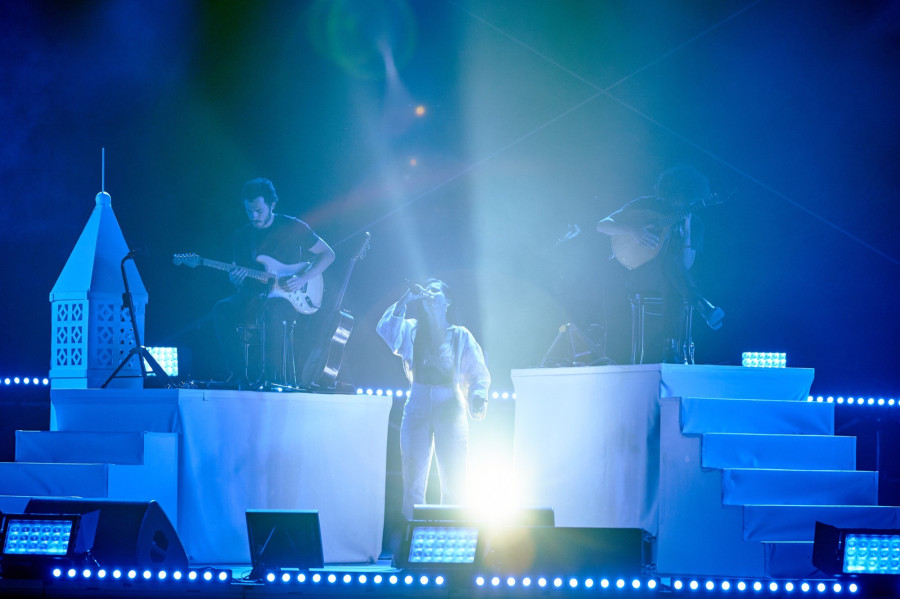Moura azonban nem kérette magát, sajátos, tört mozdulatai vastagabb kontúrt rajzoltak a ritmusnak, dalai a mediterrán népek hangzásvilágát idézték, az ízig-vérig portugál műfaj a Balkánon, a görög szigetvilágban vagy Szicílián is értő szívekre találna. A hangok mellett a díszlet is Portugáliát idézte: a színpadon az ország egy déli régiója, Algarve mívesen kidolgozott kéményeit jelenítették meg, a két gitárost pedig meredek dobogó tetejére ültették, amelyek számomra Lisszabon kaptatóit idézték, amelyeken a város képeslapokon gyakran szereplő siklóvasútjai is közlekednek.