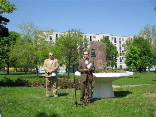 A tavaszi örömünnepen az építőmunkások emléktábláját is megkoszorúzták a Jutasi lakótelepen– emléket állítva azoknak a munkásoknak, akiknek köszönhetően épültek ezek a lakótelepi lakások -, így adva otthont családoknak, fiataloknak.