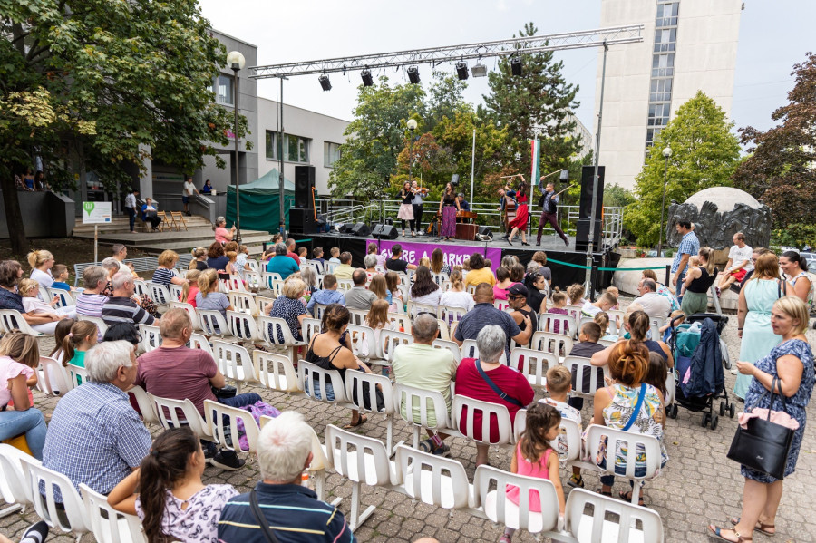 Szerda délután Paár Julcsi mesekoncertjével, majd a Veszprém-Bakony Táncegyüttes és a Veszprémi Gerence Hagyományőrző Néptáncegyüttes közös műsorával kezdődött az Agóra hagyományos nyárbúcsúztató programja a Táborállás parkban. A színpadi programok közben a kicsiket játékokkal és légvárral várták a téren.