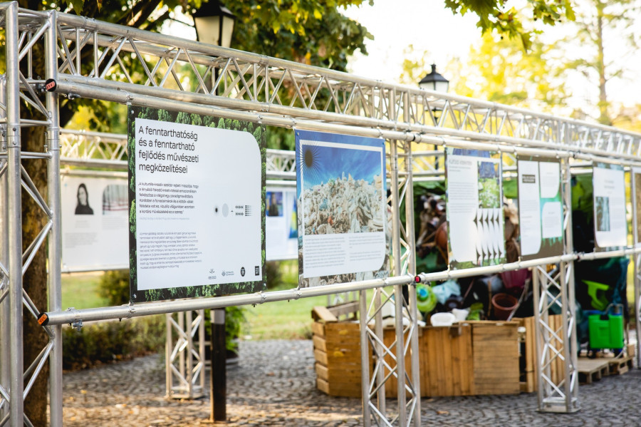 A kiállítás olyan kérdésekre adhat választ, hogy mit tehet a kultúra és a művészet a környezetvédelemért. Hogyan lehet egy szobor, festmény vagy egy giga fesztivál fenntartható, illetve arra, hogy mit is jelent a fenntartható művészet és mi maga a Tiszta Balaton, tiszta művészet projekt. Az ingyenesen megtekinthető színes, informatív tárlat egy újonnan alakuló világszemléletet fejteget, amely egy olyan rendszert körvonalaz, ahol az ember, az alkotó nem rombolja le a környezetét és nem veszélyezteti a jövőjét. Egy olyan kapcsolatot vázol, ahol lehetőség van a művészeteken keresztül, műalkotások üzenetein át megmutatni az ember és a természet kapcsolatát.
