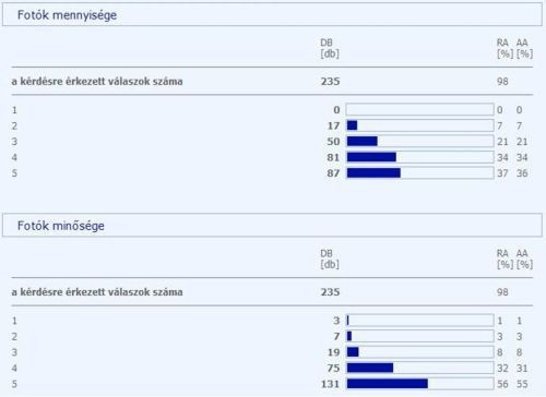 A legjobb minősítést a fotókért kaptuk, a mennyiséggel olvasóink 71 százaléka, a minőséggel 88% elégedett.