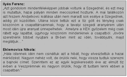 Mérkőzés utáni nyilatkozatok: