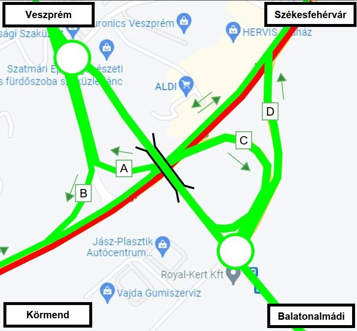 A 8. sz. főúton az Almádi csomópontban a felüljáró környezetében megszűnik a jelenleg érvényben lévő sávelhúzás.