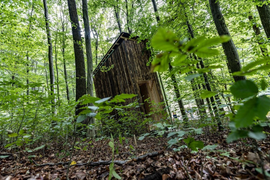 Nem messze az ajkai bányászati múzeumtól, az erdei útról letérve a fák között egy különös objektummal találkozhatnak a túrázók. A fából készült 5 méter magas, ám csupán 1,5 méter széles kabin a MOME oktatóinak és hallgatóinak a terveit és munkáját dicséri, küldetése pedig jóval több annál, hogy menedékként szolgáljon a túrázóknak.