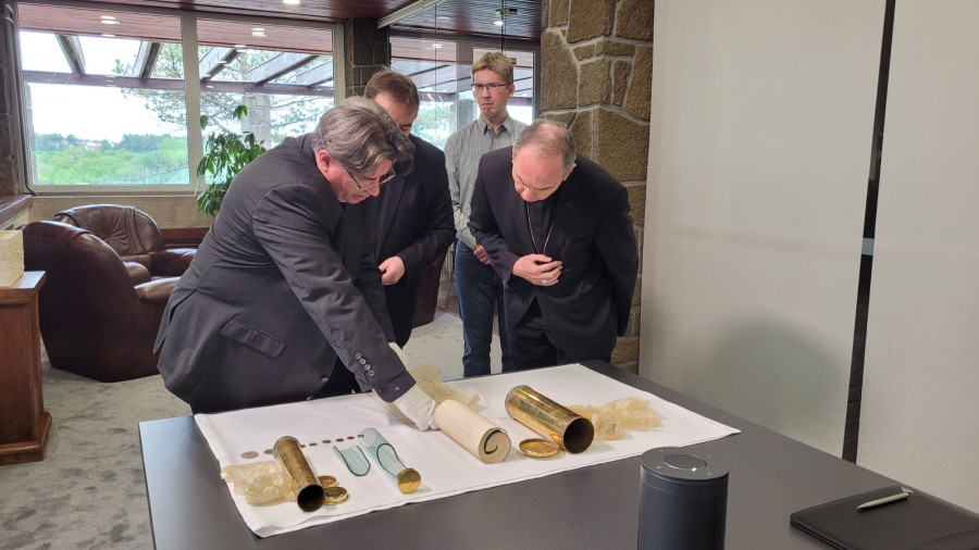 Dr. Udvardy György érsek a felnyitás előtt elmondta, egy ilyen üzenetnek sok szintű jelentése van. Van aktuális jelentése, adott korról beszél, adott üzenetet fogalmaznak meg hívő elődeink, ugyanakkor van a hitre mutató jelentése és jelentősége is éppen az ősiséget fejezi ki, hiszen előttünk, akik a hitben jártak a maguk korában, kultúrájában, az egyház javát igyekeztek előmozdítani, a székesegyház esetében pedig az istentiszteletnek, a kultusznak a helyét tették széppé. Így most üzennek, üzennek a hitről, üzennek az egyházhoz, a Krisztushoz tartozásról, mi pedig, mint őseink utódai nagy tisztelettel tekintünk rájuk, és nagy tisztelettel olvassuk majd azt az üzenetet, amit vélhetően itt, ebben a kapcsolatban találunk, fogalmazott az érsek.