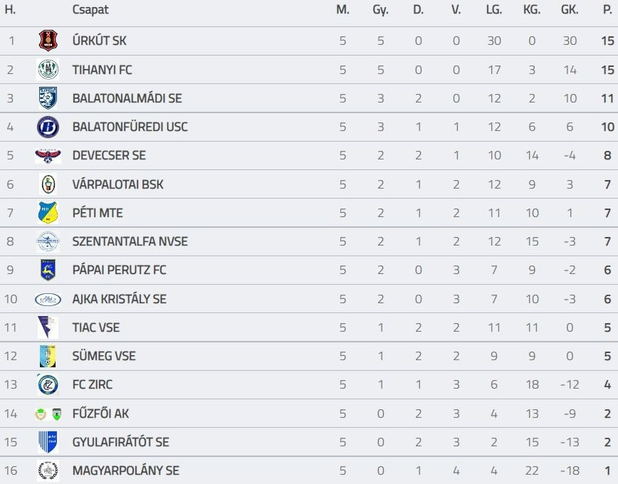 Az elmúlt hétvégén már az ötödik kört rendezték a Veszprém megyei I. osztályú labdarúgó-bajnokságban. A Tihany könnyedén, 5-0-ra múlt felül a vendég Zircet, míg a Devecser mindhárom pontot elhozta Ajkáról (1-3).