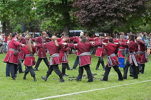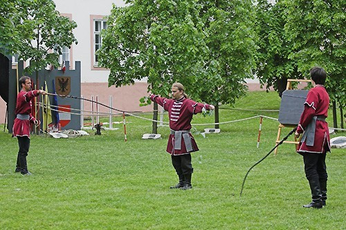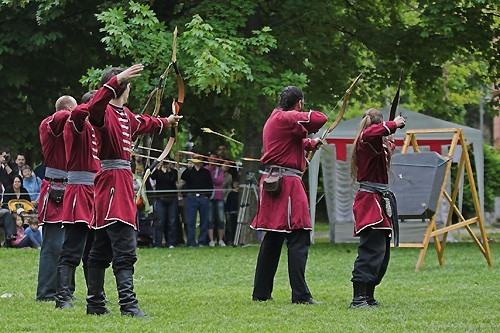 Tíz órától várták az érdeklődőket a Színházkertben, ahol megtekinthettek egy jurtaállítást, kipróbálhatták a csatacsillag és a lándzsahajítás fortélyait, illetve íjjal is célba lőhetett, aki tudott. Miután mindenki bemutatta a tudományát a profik vették át a szerepet.