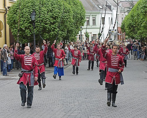 Miután véget értek a harci játékok a színházkertben, az előző század elei ruhákba öltözött urak és hölgyek - a Jeruzsálemhegyi Baráti Kör tagjai - felvonultak a várba. A Megyer Sarja hagyományőrzők, a veszprémi barantások, a mohácsi busójárók és a Fresco Bello zászlóforgatói kíséretében.