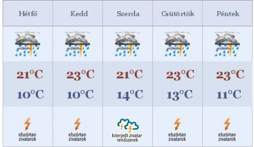 A megélénkülő délnyugati szél a Dunántúlon helyenként megerősödik. Hajnalban 8 és 13°C között alakulnak a minimumok, napközben 17-23°C-ot mérhetünk.