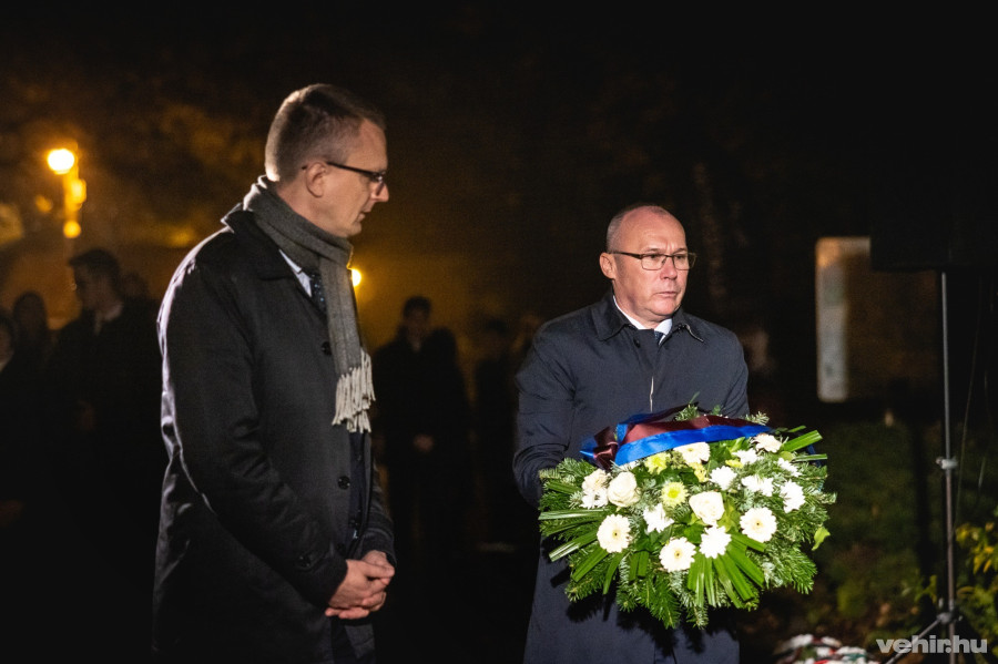 Az ünnepségen, ahol a kulturális műsort Both Gábor, színművész biztosította énekével a jelenlévők előtt felolvasták a forradalom veszprémi áldozatainak a neveit. Végül megkoszorúzták a kopjafát, valamint gyertyákat helyeztek el a forradalmárok emlékére. A koszorúzók közt jelen volt Porga Gyula, polgármester, Navracsics Tibor, területfejlesztési miniszter és Ovádi Péter, a térség országgyűlési képviselője, valamint több helyi fideszes és KDNP-s önkormányzati képviselő is.