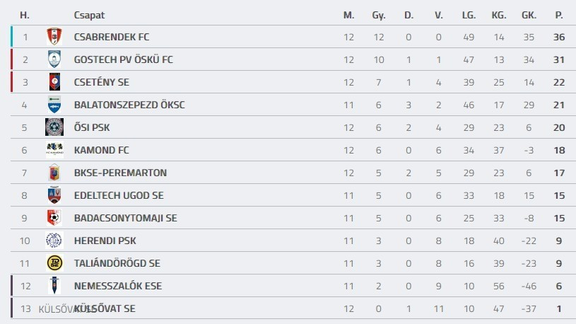 A szombati szuperrangadón a második Öskü az éllovas Csabrendeket fogadta. A hazaiak már a 7. percben emberhátrányba kerültek, s végül viszonylag simán ki is kaptak (1-3). Ezzel eldőlt, hogy a Csabrendek telelhet a tabella élén.