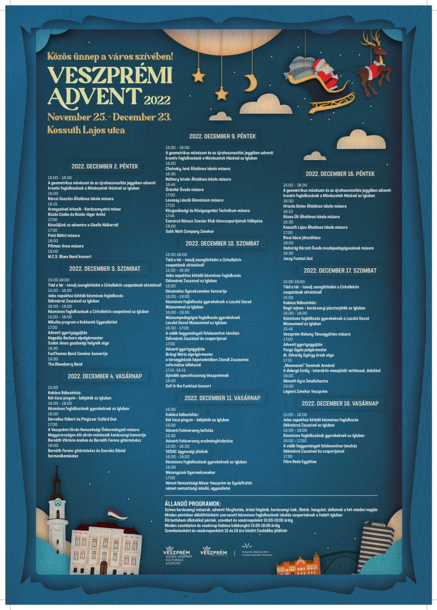 Közös ünnep a város szívében! Gyere és érezd jól magad velünk az adventi hétvégéken 2022. november 25. és december 23. között!