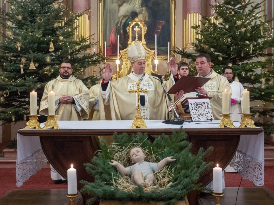 Mint ahogyan a választott nép is napról napra várta, mikor érkezik el a Messiás, a Megígért, a Fölkent. Mi magunk is adventi készületünkben készítettük lelkünket az Úrral való találkozásra, jó cselekedetekkel, imával, megtérést jeleinek a felmutatásával és mégis ezzel együtt is a mai éjszaka azt üzeni nekünk, hogy az Isten akar találkozni velünk. Sokkal inkább, mint ahogyan a mi vágyaink ezt előkészítik, ahogyan a mi vágyaink ezt megfogalmazzák. Isten akar találkozni velünk. Isten szeret bennünket. Azt mondja, te vagy a mindenem, olyan leszek, mint te, hogy értsd végre, mit jelent szeretni. Addig megyek utánad, addig megyek érted, amíg te esetleg tévedésedben, gyengeségedben távolodsz tőlem. Föllellek téged, bárhol is vagy, mert menteni akarlak, mert gyógyítani, mert szabadítani akarlak. Szeretlek téged. Vállalom érted a kiszolgáltatottságot. Nem eltűröm, nem elszenvedem, hanem akarok kiszolgáltatott lenni. Vállalom a sebezhetőséget, vállalom a sebeket, mert szeretlek, mert Isten a szeretet. Az isteni szeretet számunkra isteni jelként a gyermek születésében mutatkozik meg.