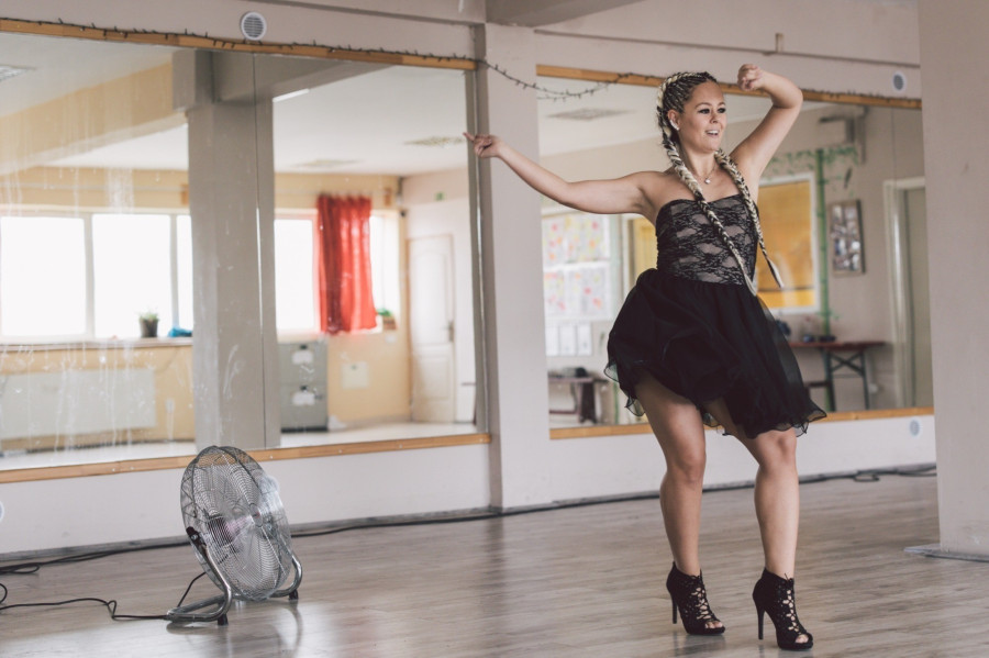 „Biztosan van egy alapvető tehetségem a tánchoz, de rengeteget kellett küzdenem, mire idáig eljutottam” – mondja Timi. Egyrészt meg kellett szoknia, hogy a táncparketten a férfi vezet, a nő pedig rábízza magát. „Másrészt nekem mindig sokkal lassabban ment a tanulás. Emlékszem, amikor elmentünk egy fesztiválra, ott sírtam a hátsó sorban, és nem értettem, hogy lehet, hogy a többiek egyből értik a feladatot, egyből megy nekik a koreográfia, nekem meg nem. Vagy amikor egy tanárképzésen betették a zenét, hogy táncoljunk rá valamit, és teljesen lefagytam.” De nem adta fel. Minden helyzeten végigküzdötte magát, mert hitt benne, hogy a testtudat, a koreográfiák elsajátításának képessége fejleszthető. Ha kellett, heti plusz 10-20 órát gyakorolt.