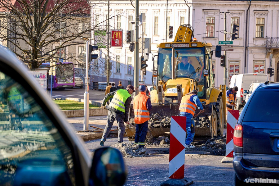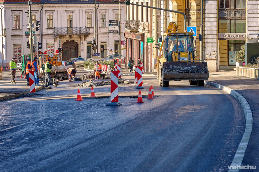 Ezt tapasztalhatják a belvárosban közlekedők, amikor például a napokban a Hangvilla előtti szakaszon nagy intenzitással, ám már határidőn túl dolgoznak a Swietelsky munkatársai, az aszfaltozás miatt egy sávra szűkített utcán.