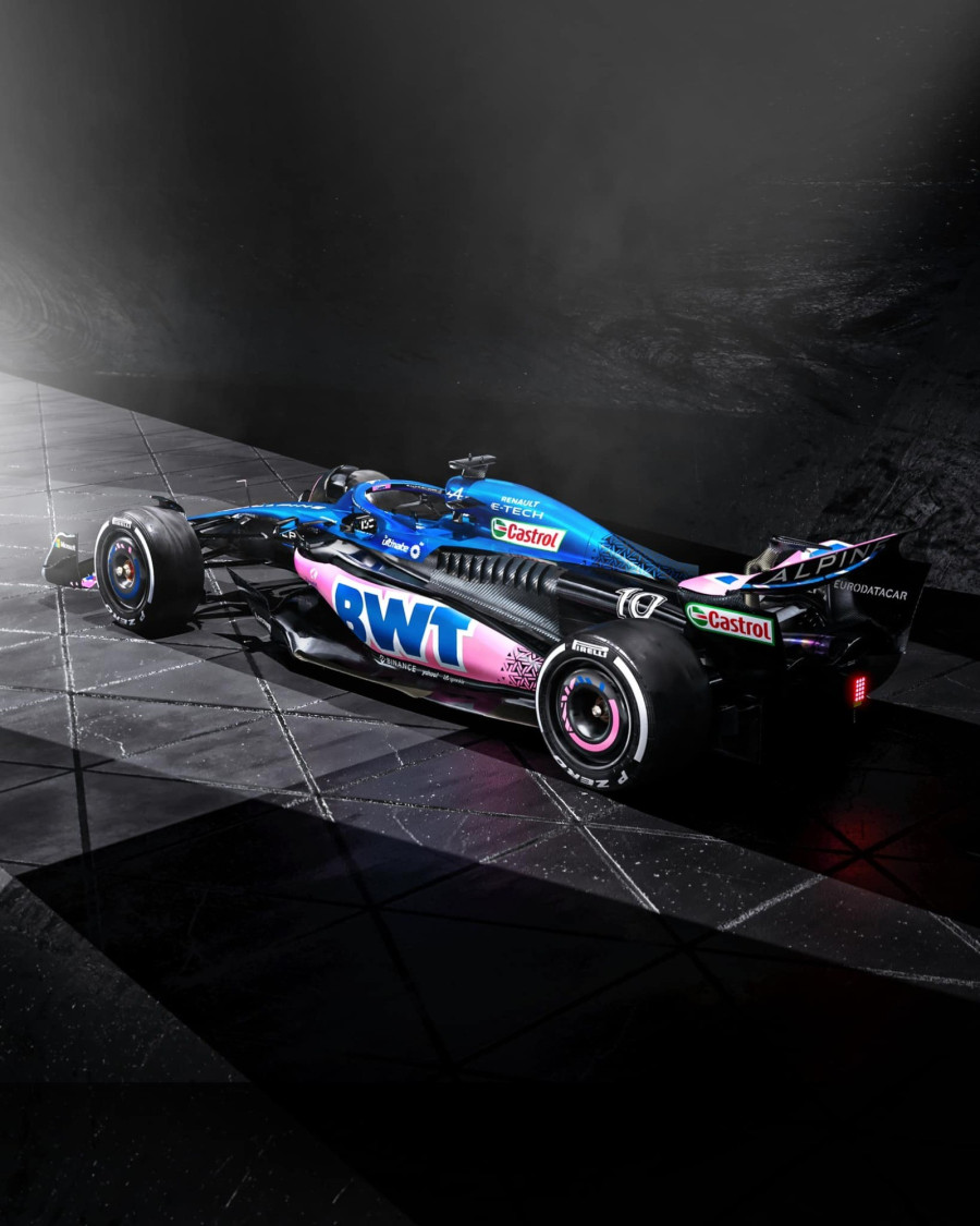 Nagyon bátor ez a színösszeállítás a rózsaszínnel, ami egyébként az Alpine főszponzorának, a BWT-nek a színe. Elsőre sokkoló lehet az autó külseje, de ha jobban megnézzük, valójában nem sok a rózsaszín rajta a kékhez képest. Bevállalták, amivel szintén azt sugallják, hogy az élmezőnybe pályáznak, nem akarnak beleszürkülni a többiek közzé. Minden dizájn a célokat támogatja, és azt, hogy elmondják a márkák magukról azt, amit szeretnének, hogy velük kapcsolatban érezzünk.