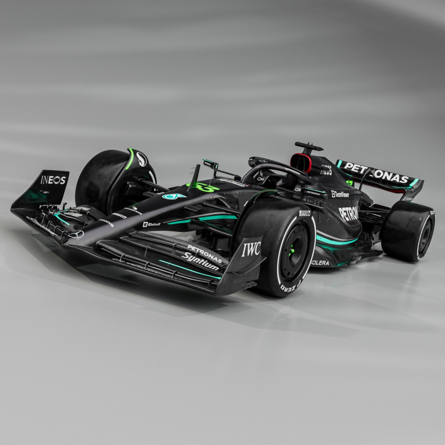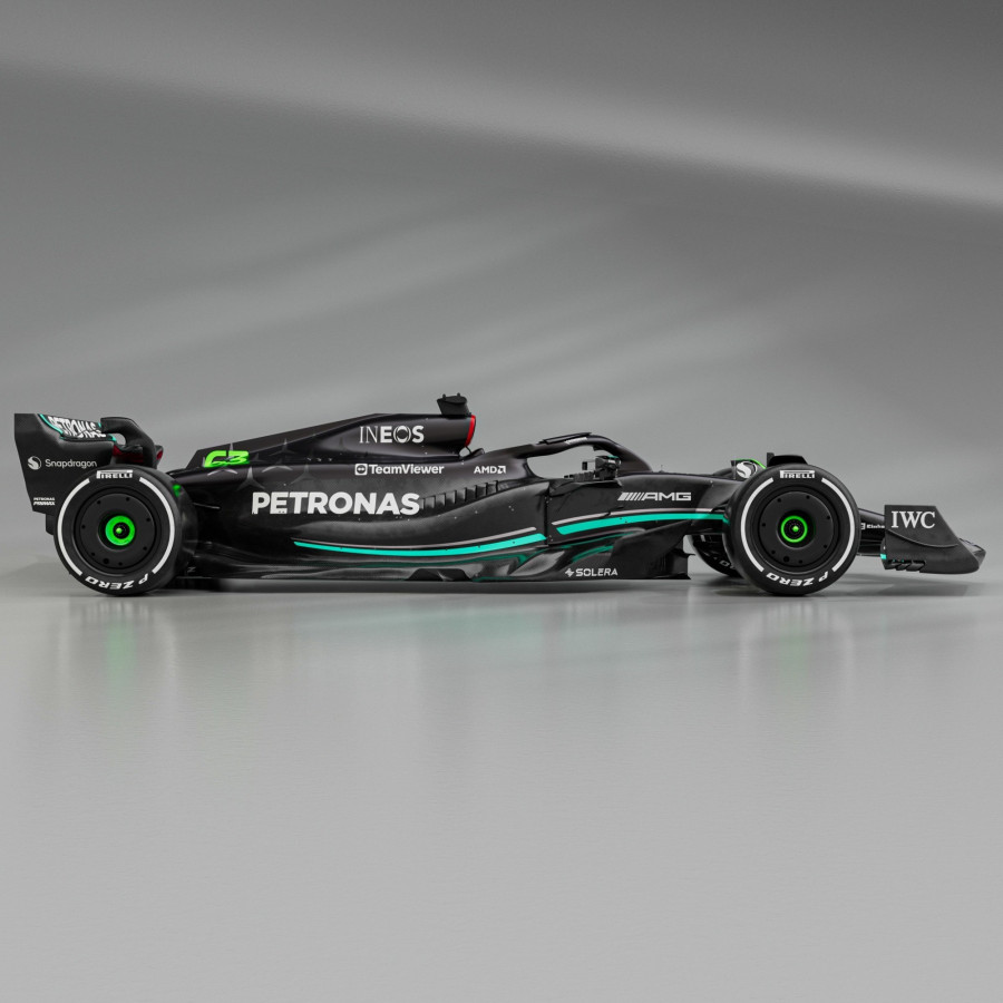 Elsőre a Batmobil juthat róla eszünkbe. A teljesen fekete autó ezzel a Petronas-cián csíkkal, ami leköveti az autó vonalait, nagyon karakteressé teszi. Ez a neonszínű árnyalat viszont kissé érthetetlen. Az, hogy a versenyző számát neonnal írták, nem lehet véletlen. Csak tippelek, de a cél itt a megkülönböztetés. Összességében nagyon vagány.