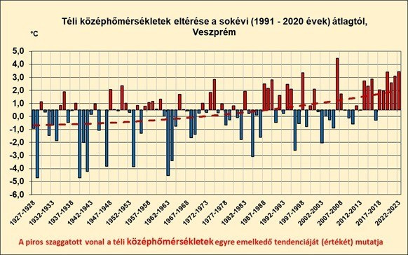 Összességében elmondható, hogy az idei tél is hűen tükrözi a globális éghajlatváltozás okozta tüneteket. Az átlagtól jóval magasabb évszakos és havi középhőmérsékletek mellett több napi maximum hőmérséklet is megdőlt és az éjszakák is egyre enyhébbek. Kevesebb a fagyos és téli nap, elmaradtak a zord napok. A havazást több esetben havaseső váltja, tartós hótakaróról nem beszélhetünk. Szélsőséges a csapadék eloszlása is, bár több esett az átlagnál, de a február csapadékösszege 33 százaléka volt a szokásos mennyiségnek. A szélsőségre utal a február 4-én fújó viharos szél is, amikor megdőlt az országos szélrekord. Veszprémben a repülőtéren ekkor a széllökések elérték a 100 km/órás értéket.
