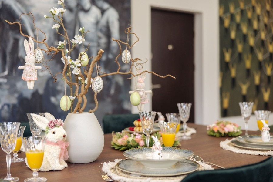 Az ünnepi asztal díszein, a tányérokon, a csészéken, a tálakon és a szalvétákon idén is megjelenik motívumként a nárcisz, a tulipán, a lenvirág, a harangvirág és a hóvirág, ahogy a bárány és a nyúl is. Míg a bárány egyértelműen a zsidó-keresztény kultúrából származó jelkép, addig a nyúl a termékenységre utal, húsvéti szimbólumként először a 16. században, Németországban használták. Igaz, egyes elméletek szerint egy egyszerű félreértés – egészen pontosan a több német területen húsvéti fogásnak számító gyöngytyúk, vagyis a Hasel és a nyúl német neve, a Hase közötti hasonlóság – vezetett oda, hogy a nyúl ilyen fontos szerepet kapott az ünnepben.